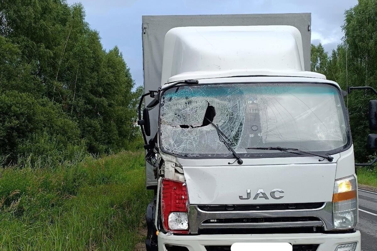 Грузовичок сбил лося, судя по всему, насмерть. Состояние водителя же не уточняется, другие подробности выясняются.