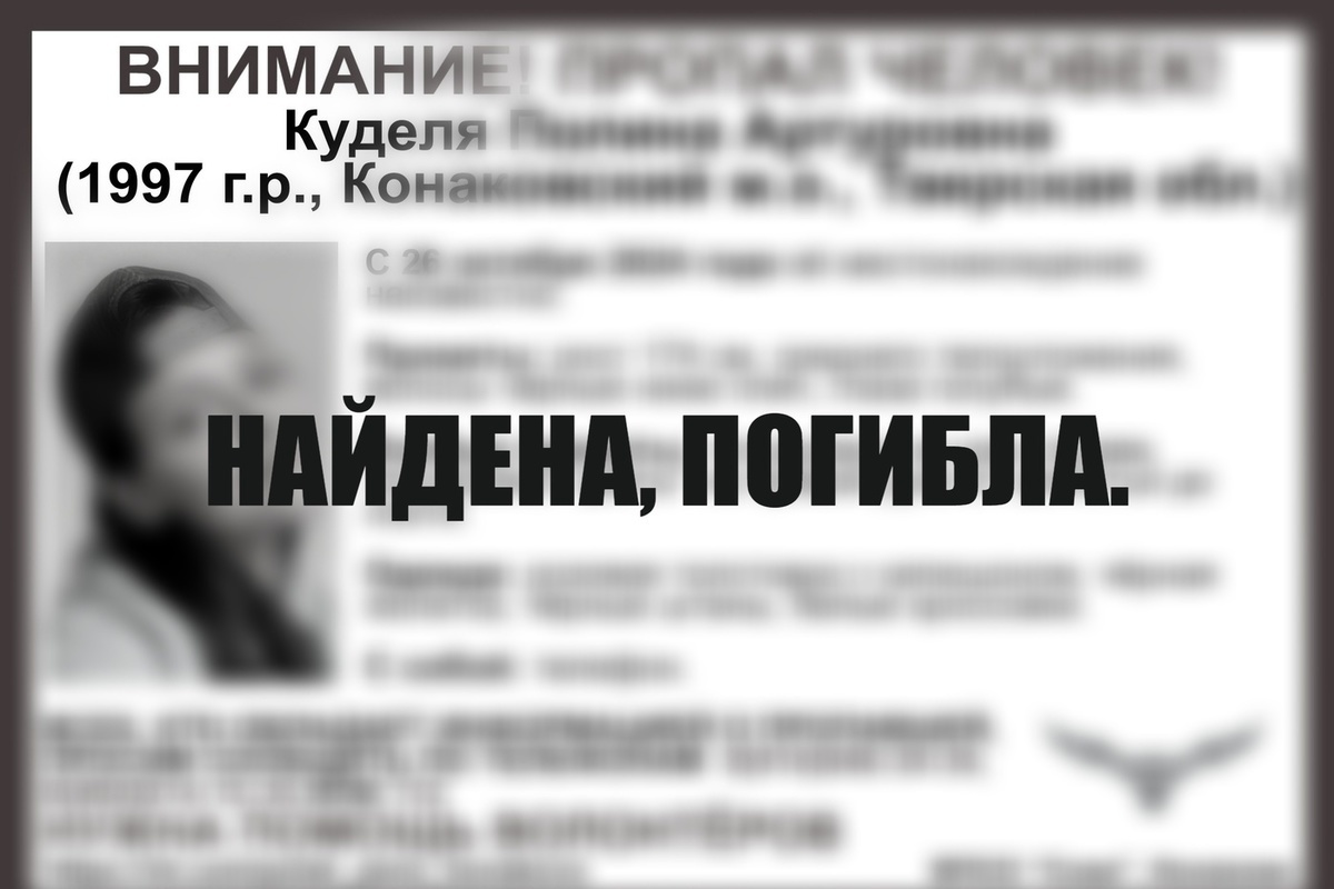 Полина Куделя пропала еще в конце октября текущего года - 27-летнюю женщину искали в Конаковском округе. Но поиски результатов не приносили.