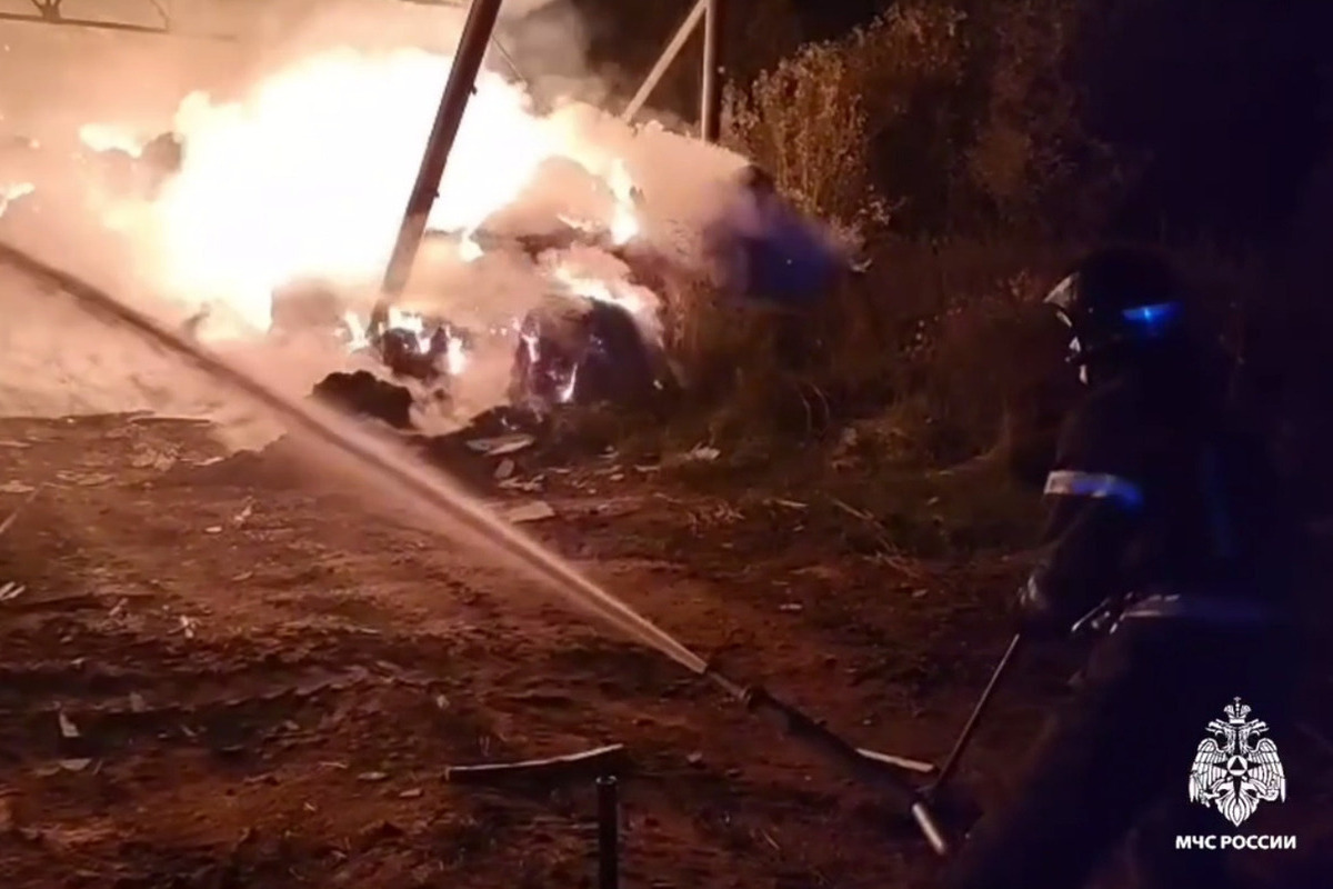 Пожарные тушат возгорание в ангаре с сеном под Тверью