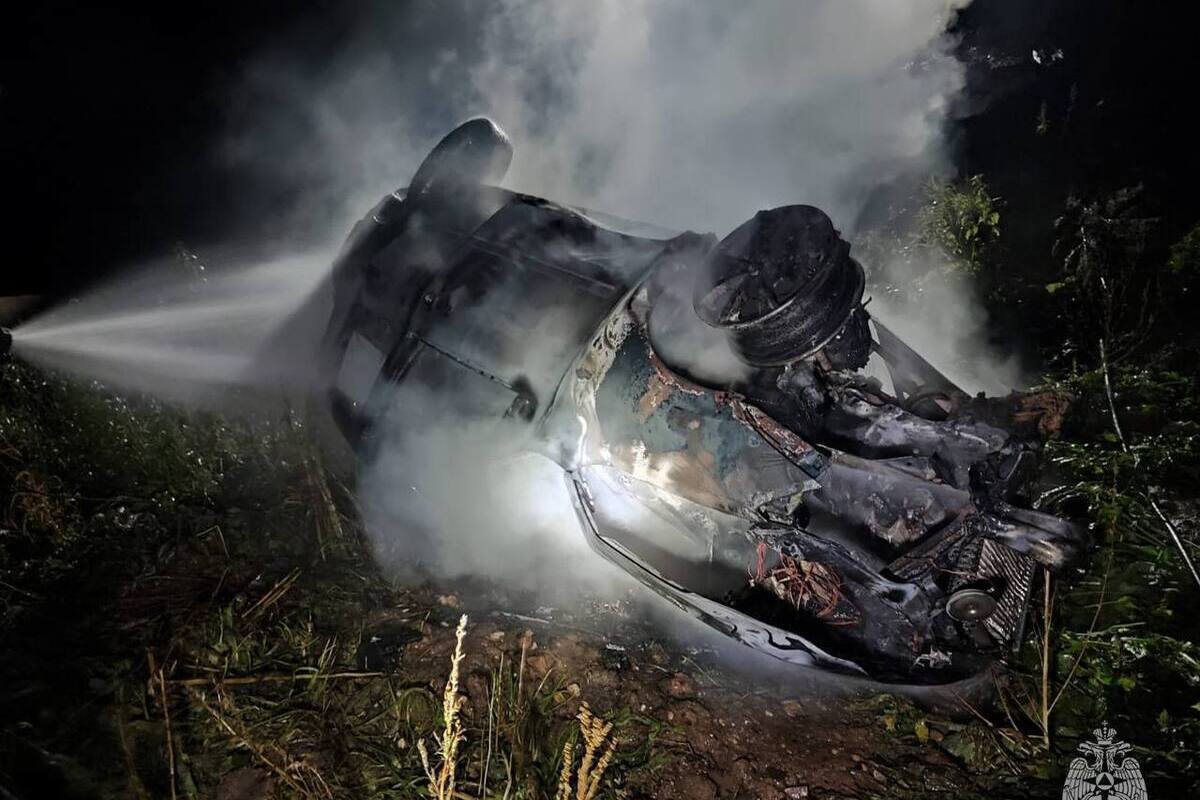 Стало известно, что "Лада" съехала в кювет, перевернулась и загорелась, На место происшествия были направлены сотрудники ПСЧ №12, которые потушили возгорание и ликвидировали последствия ДТП.
