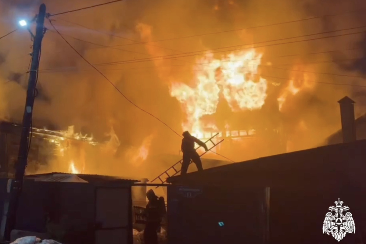 Также стало известно, что на месте развернут оперативный штаб - спасатели делают все, чтобы уберечь от огня соседние строения. На месте происшествия работают 54 спасателя и 10 машин.