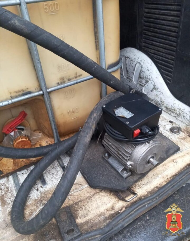Полицейские установили, что причастным к преступлению является ранее судимый 42-летний житель Торжка. Злоумышленник подъехал на своей машине «Ситроен Берлинго» к припаркованному грузовику. При помощи электронасоса он перекачал топливо в еврокуб, установленный в кузове автомобиля.