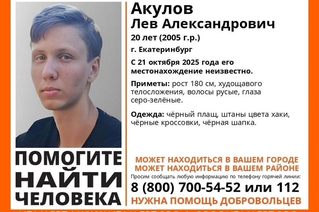 20-летний молодой человек является жителем Екатеринбурга, однако может находится на территории нашего региона. Его рост составляет 180 сантиметров, телосложение худощавое, волосы русые, глаза серо-зеленые.