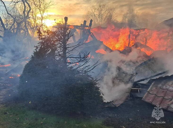 Дом сгорел полностью, пострадавших нет.