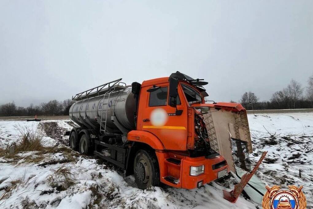По предварительной информации, КамАЗ пытался обогнать другой грузовик, который совершал поворот налево. В ДТП пострадал водитель КамАЗа, его состояние не уточняется.