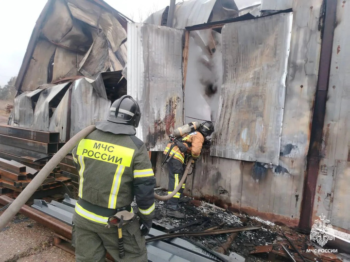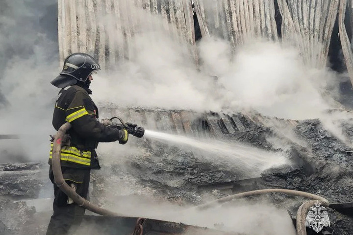 Сильный пожар на складе в районе Литвинок в Твери потушили