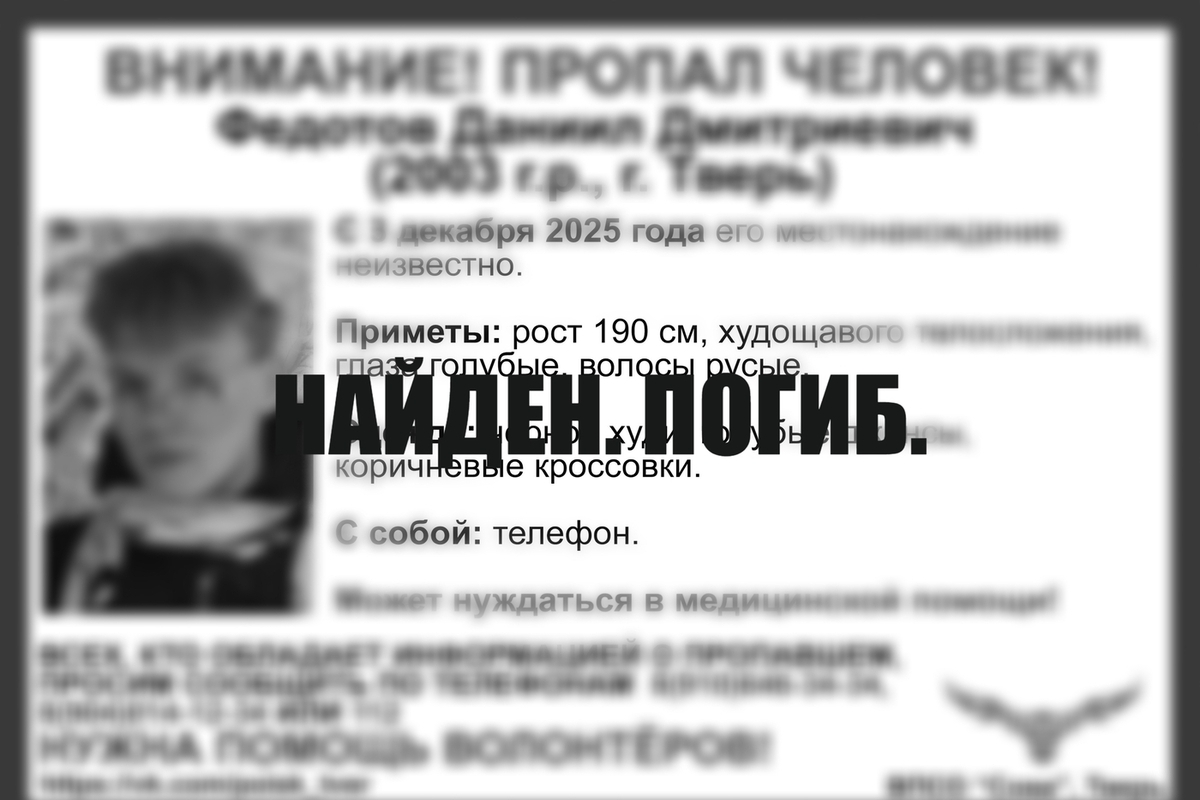 Трагически завершились поиски жителя Твери Федотова Даниила Дмитриевича, сообщили в ВПСО “Сова”.