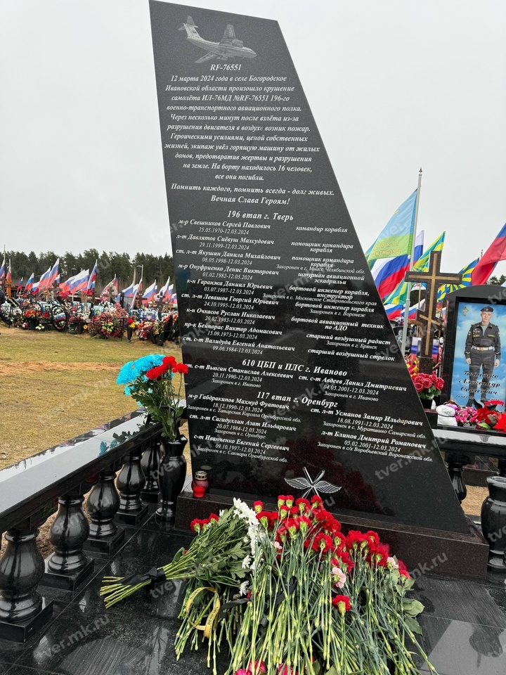 На кладбище в Дмитрово-Черкассах под Тверью на месте захоронения членов экипажа разбившегося в 2024 году Ил-76 установили мемориальный комплекс. О его открытии стало известно в субботу.
