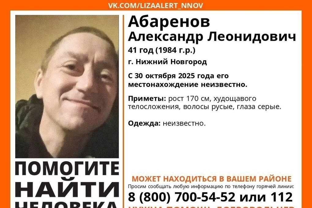 Местонахождение мужчины неизвестно еще с 30 октября. По данным волонтеров, пропавший является жителем Нижнего Новгорода, однако он может находиться на территории нашего региона.