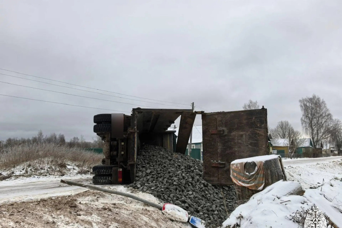 Под Тверью вечером четверга опрокинулся грузовик со щебнем, сообщают в пресс-службе ГУ МЧС России по Тверской области.