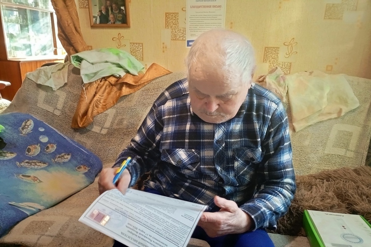 В первый день голосования в Оленино свой выбор сделал Виктор Яковлевич Сивас, ветеран Великой Отечественной войны. Для этого к нему домой пришла председатель местного УИК.