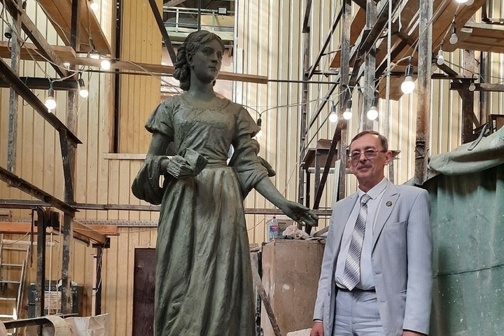 Речь идет о глиняной модели памятника. Итоговая скульптура будет из бронзы, ее установят рядом с краеведческим музеем уже через два месяца.