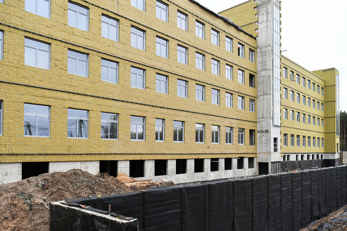 На сегодняшний день в работах задействованы более 200 человек и 15 единиц техники. Строители завершают монолитные в работы. В частности, заканчивается строительство железобетонных каркасов и наружных стен корпусов лечебного учреждения, продолжается укладка внутренних стен, монтируются дверные и оконные блоки, укрепляются стены, устраиваются внутренние инженерные коммуникации и строится теплотрасса.