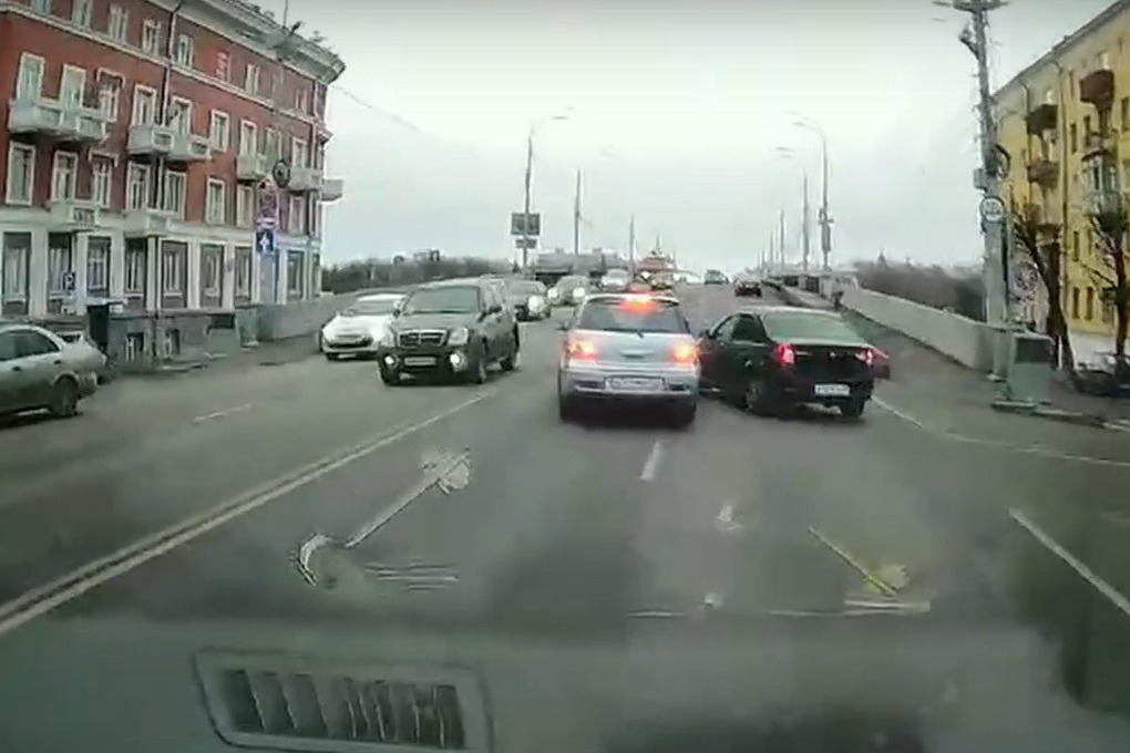 На опубликованной в группе «Подслушано у водителей Тверь» записи видно, как один из автомобилистов не уступает дорогу, а другой совершает обгон справа и излишни сильно жмет на педаль газа, въезжая на мост.