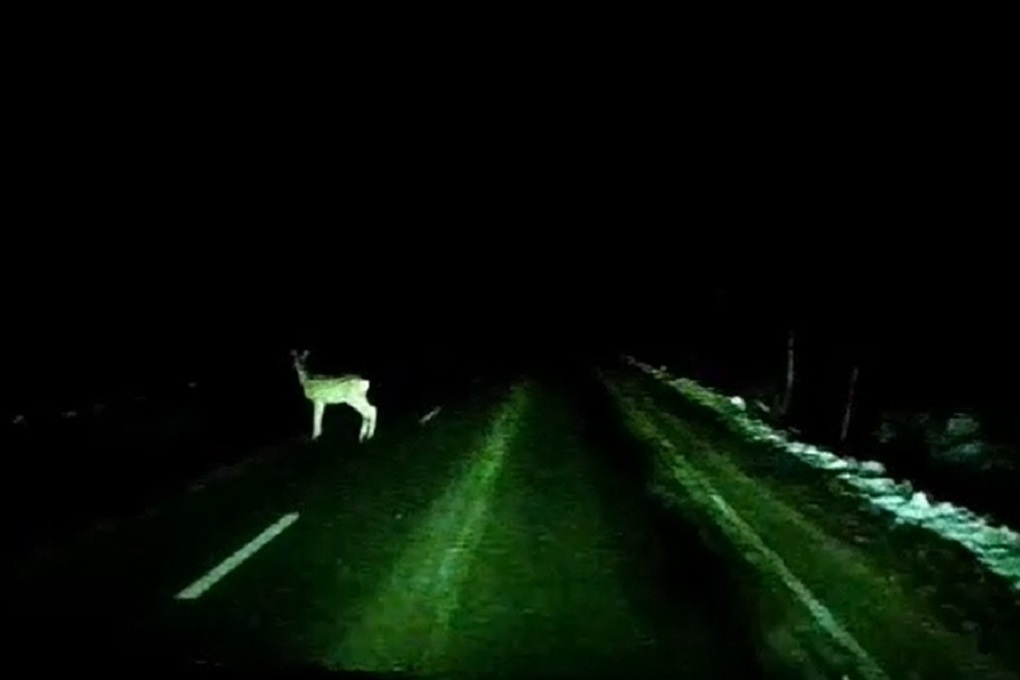 Ночью 2 декабря в Тверской области на автомобильной дороге Изоплит-Редкино сняли на видео маленького оленя.