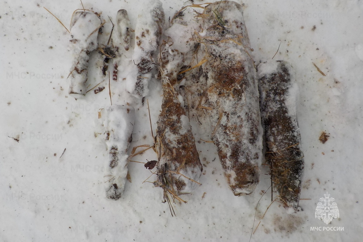 Так, в районе деревни Мироново нашли три артиллерийских снаряда, три минометные мины, две ручные гранаты. Находки времен Великой Отечественной войны уничтожили на специальном полигоне.