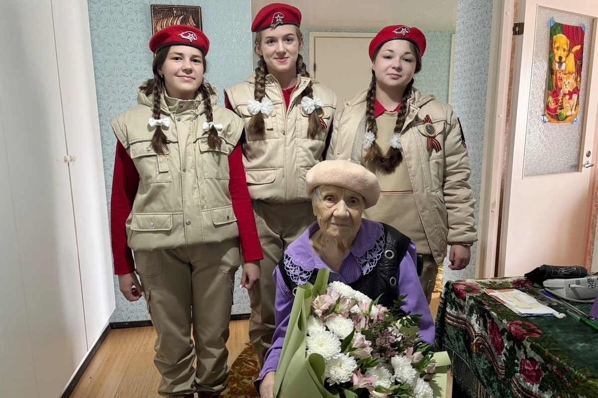 Так, в Андреаполе юнармейцы отряда “Патриот” вместе со своим командиром поздравили с праздником ветерана Великой Отечественной войны Анну Ивановну Кириллову, вручив ей цветы.