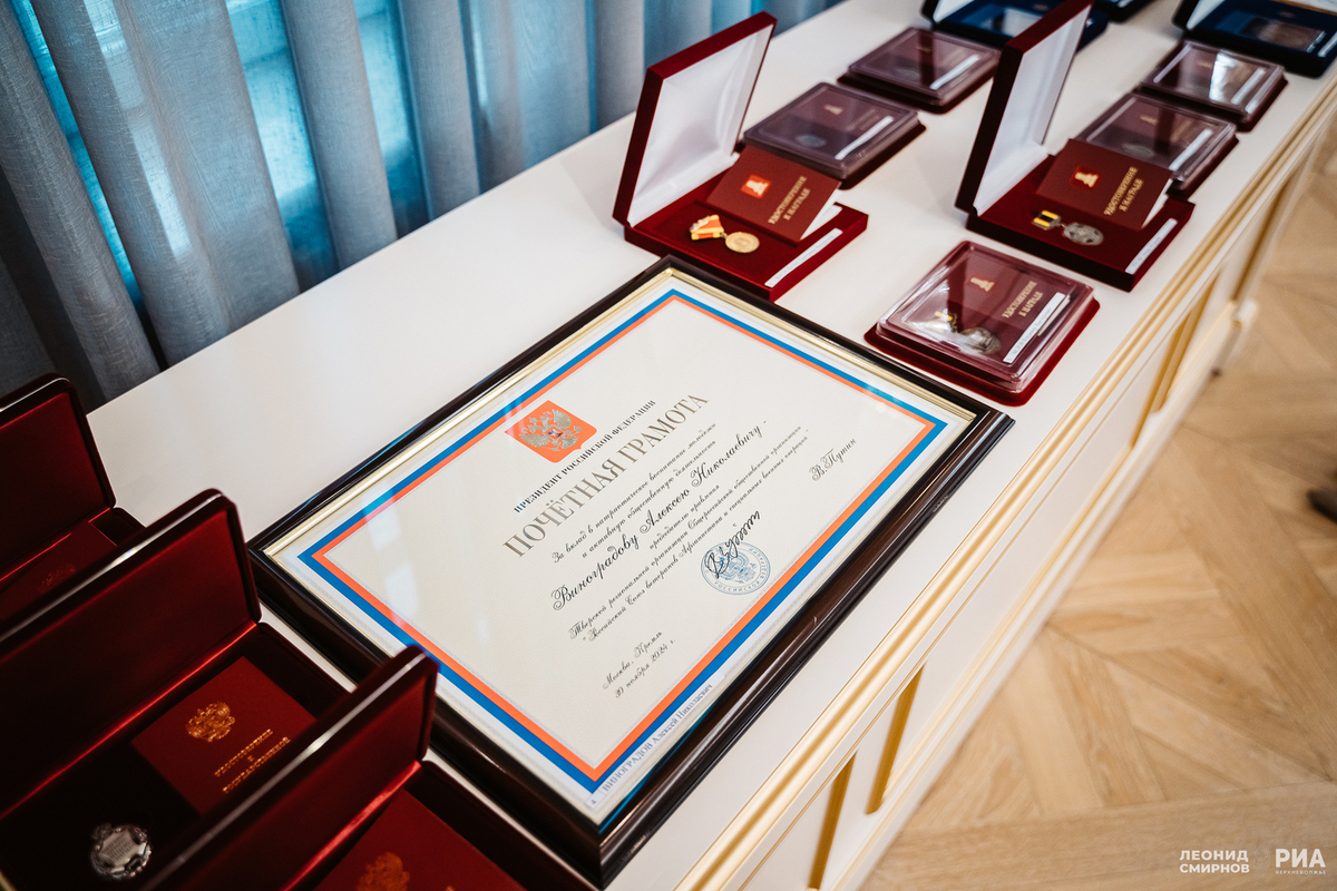 Кроме того, почетную грамоту президента РФ вручили главе общественной организации «Российский Союз ветеранов Афганистана и специальных военных операций» Алексею Виноградову. В свою очередь, Екатерина Васильева из Фировского округа, являющаяся мамой пяти детей, стала обладателем почетного знака Тверской области «Слава Матери».
