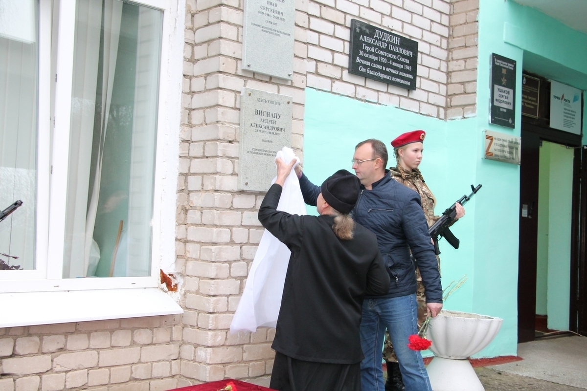 В тверской области торжественно открыли мемориальную доску в честь выпускника Красномайской школы Вышневолоцкого округа Виснапу Андрея Александровича, погибшего при исполнении воинского долга во время спецоперации на Украине.