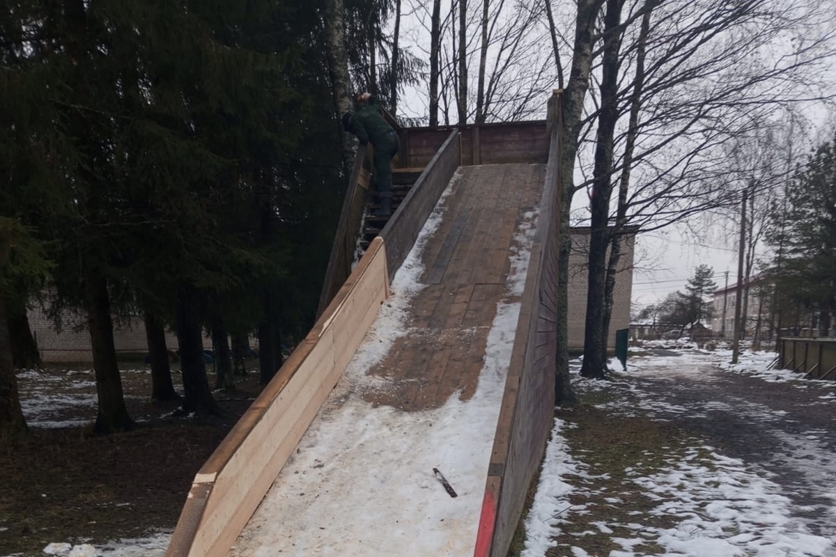 В Оленино Тверской области отремонтировали детскую зимнюю горку, сообщают в группе "Оленино – наш дом" во ВКонтакте.