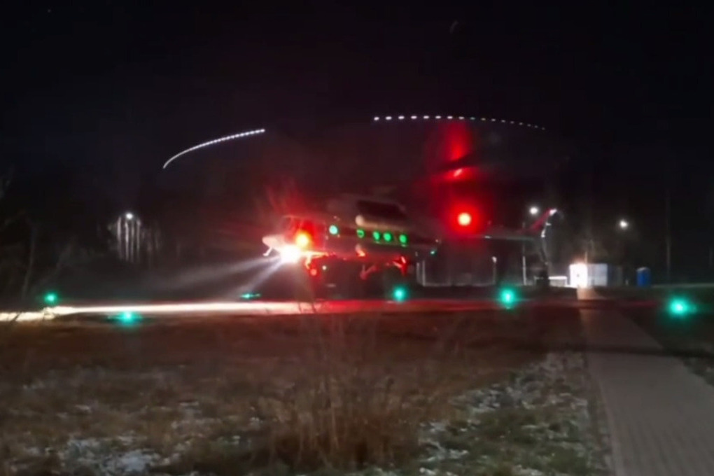 Вертолет Ми-8 совершил посадку радом с местной ЦРБ. На борт в сопровождении бригады врачей поместили девочку.