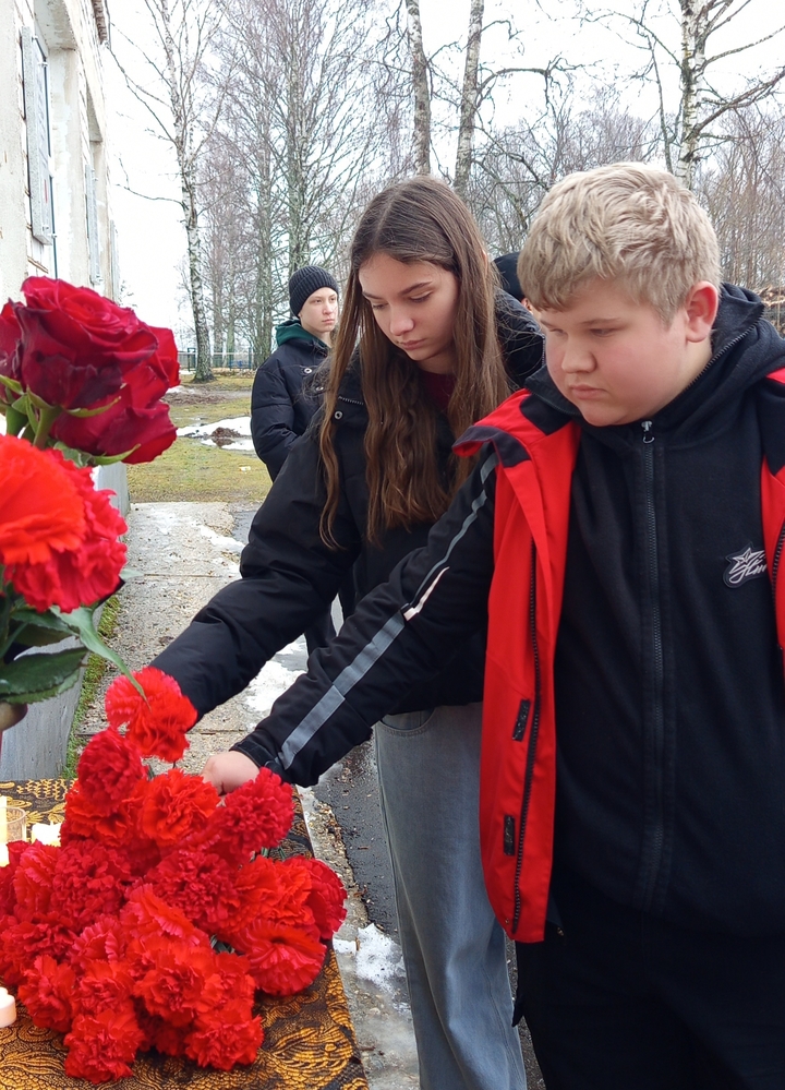 На церемонии открытия мемориала присутствовали родители военнослужащего, представители администрации, общественники и школьники.