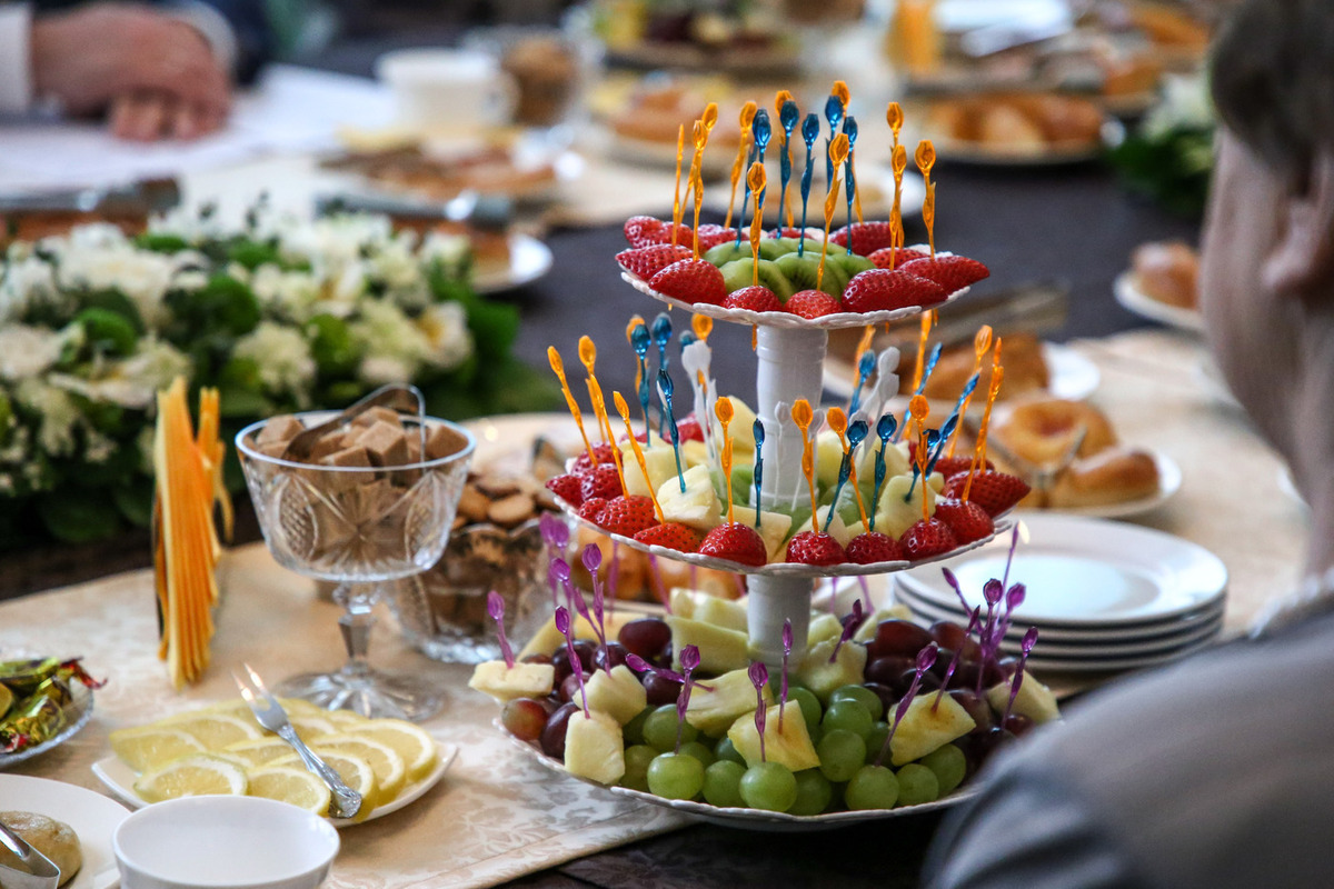 В качестве горячего блюда отлично подойдут запеченная свинина, птица или рыба. Идеальным гарниром к ним станут молодой картофель, тушеные овощи или рис с зеленью. А на десерт можно подать к столу любую сладость, будь то торты или фруктовые салаты.