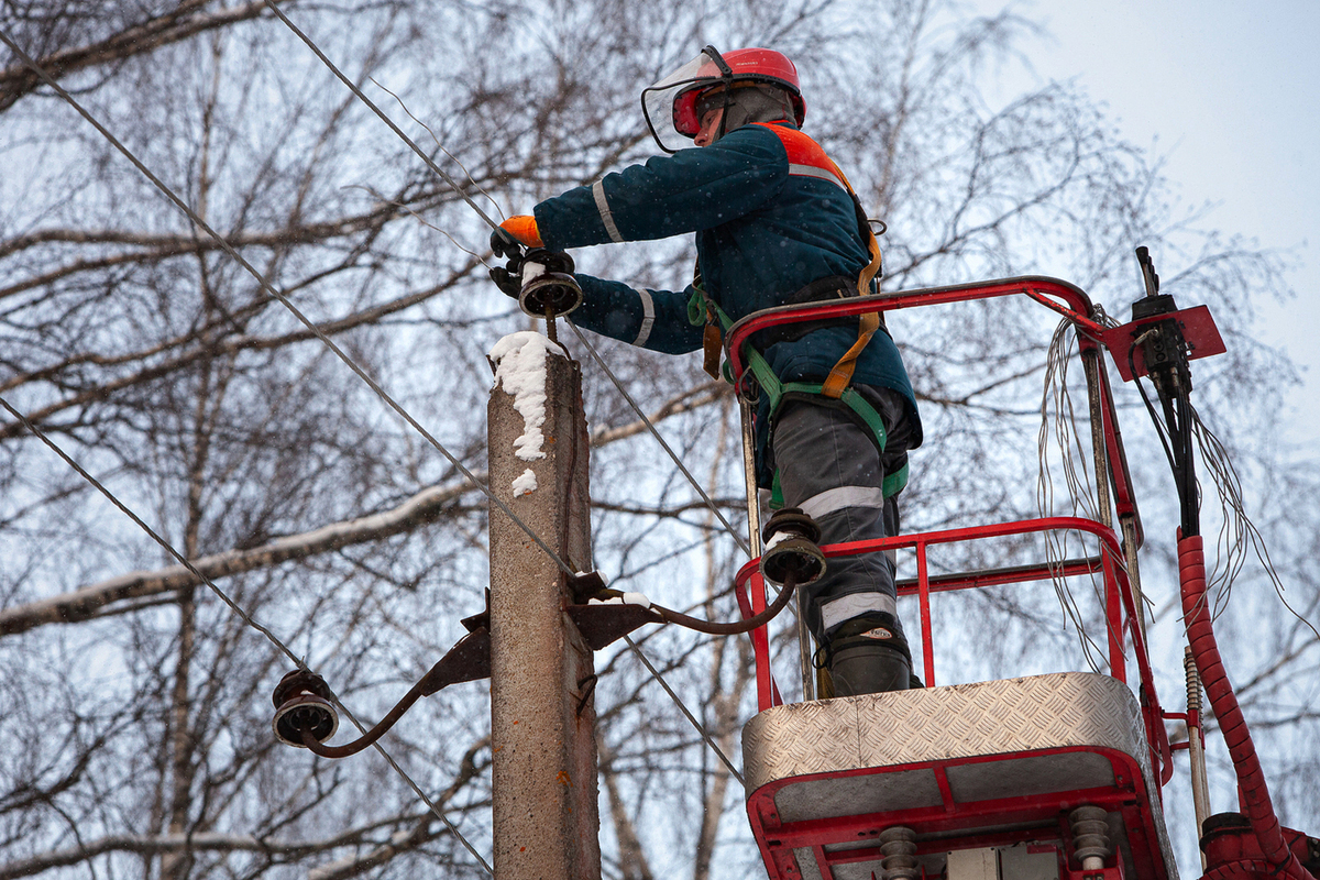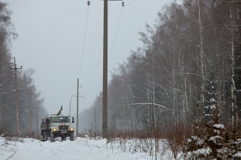 Энергетики ведут работы по спилу стволов и ветвей, которые под тяжестью налипшего снега и наледи угрожают падением и новыми обрывами проводов.