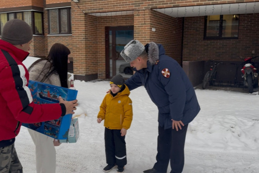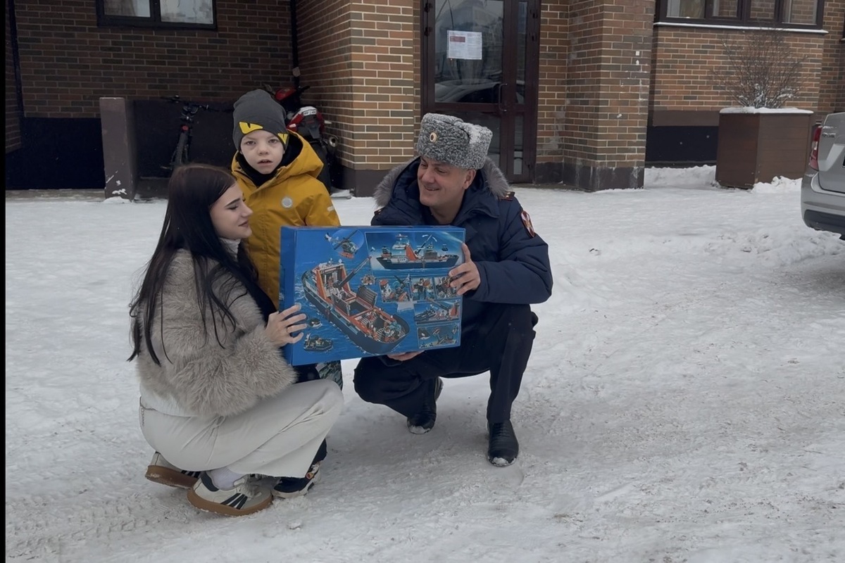 Полковник полиции Олег Тышковский вручил мальчику большой конструктор «Лего». После этого Матвея и его старших сестер покатали на служебном автомобиле Росгвардии и показали работу специальных сигналов.