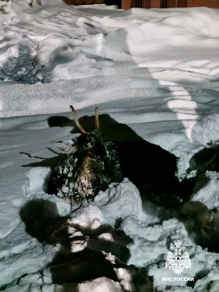 Сотрудники аварийно-спасательной службы и Охотнадзора прибыли на место происшествия и помогли застрявшему животному покинуть льдину.